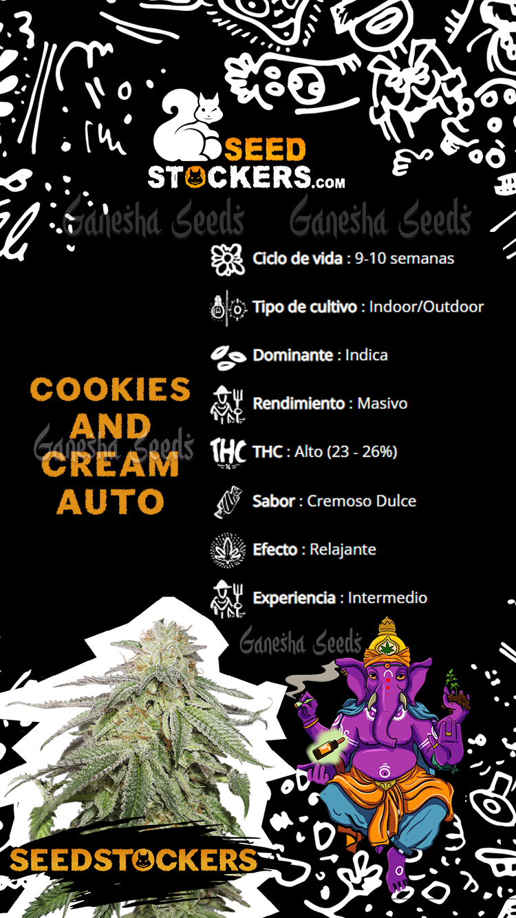Cookies and Cream se ha convertido rápidamente en una de las variedades imprescindibles de EE. UU. Esto se debe en parte a la deliciosa e intensa diversión que parece durar para siempre, también por el sabor dulce y suave de la variedad. La genética proviene de Starfighter y un fenotipo especial muy potente de la familia Cookies. El cruce retiene niveles excepcionales de THC de la genética parental estable. Lo mejor de todo es su especial sabor suave y cremoso de la variedad. Es una variedad única de primer nivel con un atractivo especial, que tarda alrededor de 9 semanas en florecer con generosos rendimientos. Una vez la preubes, nunca la vas olvidar!