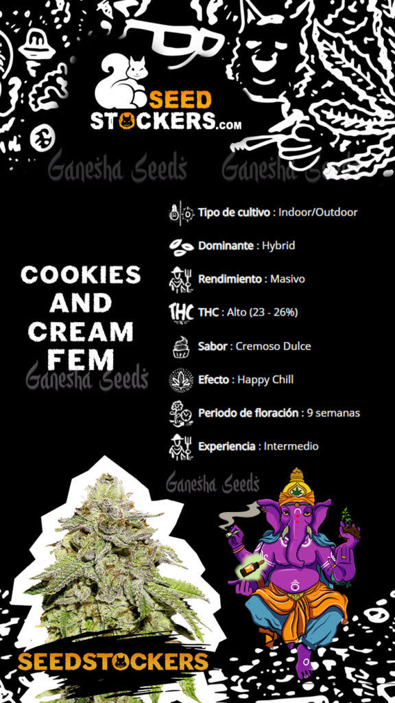 Cookies and Cream se ha convertido rápidamente en una de las variedades imprescindibles de EE. UU. Esto se debe en parte al subidón delicioso e intensamente placentero que parece durar para siempre. Y en parte por el sabor dulce y suave de la variedad. La genética procede de la Starfighter y de un fenotipo especial muy potente de la familia de las galletas. El cruce conserva los niveles excepcionales de THC de la genética parental estable. Lo mejor de todo es el sabor especial, cremoso y suave de la variedad. Es una variedad única de primera categoría con su propio atractivo especial, que tarda alrededor de 9 semanas en florecer y produce cosechas generosas. Una vez probado, ¡nunca olvidado!