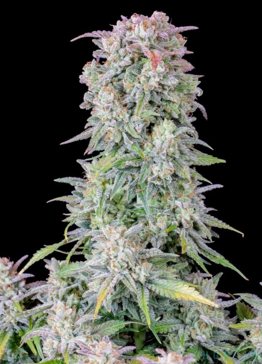 Los cogollos crecen más densos que la mayoría de los híbridos con dominancia Indica, desarrollan un aspecto puntiagudo casi en forma de lanza y cálices hinchados con unos pocos pelos delgados de color naranja claro espaciados alrededor de ellos y una gruesa capa de resina por todos los cogollos que les da un tono blanquecino al color verde. Verás muchas hojas de azúcar con montones de tricomas que te dan una idea de qué esperar incluso antes de la cosecha, lo que significa que esta cepa golpea con fuerza y es adecuada para los consumidores más exigentes.