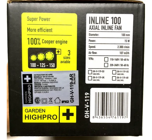 INTRACTOR – EXTRACTOR GARDEN HIGHPRO PROFAN INLINE 100 4 PULGADAS