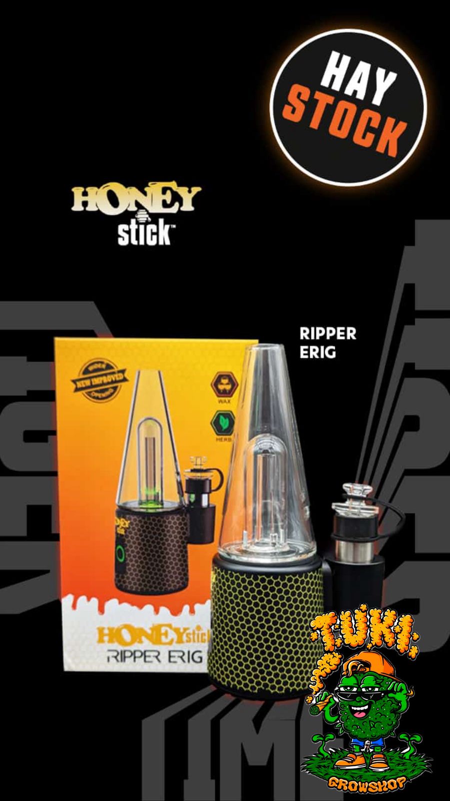 Sumérgete en una experiencia de dabbing y hierba seca de siguiente nivel con el nuevo HoneyStick Ripper E-Rig. Fusionando a la perfección una funcionalidad de primer nivel con una estética impresionante, este vaporizador eléctrico destaca por su diseño único, adecuado tanto para dabs como para hierbas secas.